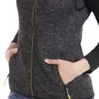 Gilet zippé sans manches en molleton tricoté chiné, avec des bordures élastiques et un liseret noir. Curseur de fermeture éclair dans un coloris contrastant. Vêtement essentiel et pratique pour toutes les saisons. Impressions logo en relief et petit patch en caoutchouc injecté 3D.