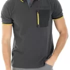 Polo a maniche corte, taglio dritto comfort, colletto e maniche a costine, bordo manica e colletto in contrasto colore, tasca applicata lato cuore con zip, stampa 3D del logo del brand sopra la tasca. Abbottonatura foderata a mezzaluna e chambray.