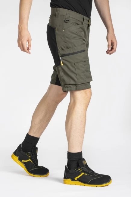 Bermuda tecnico multitasche in microfibra elasticizzata densa e traspirante. Elastico in vita sui fianchi che garantisce il massimo comfort e con interno antiscivolo per un'ottima vestibilità. Pannello posteriore rinforzato. Ampie tasche con patta sul retro, doppia tasca con patta sul lato destro con chiusura in velcro, tasca con cerniera sulla coscia sinistra, stampa del marchio sulla parte superiore della coscia sinistra, lungo la cucitura. Passanti XXL sul retro, con punti di arresto rinforzati, così come su tutte le cuciture delle tasche e della patta.